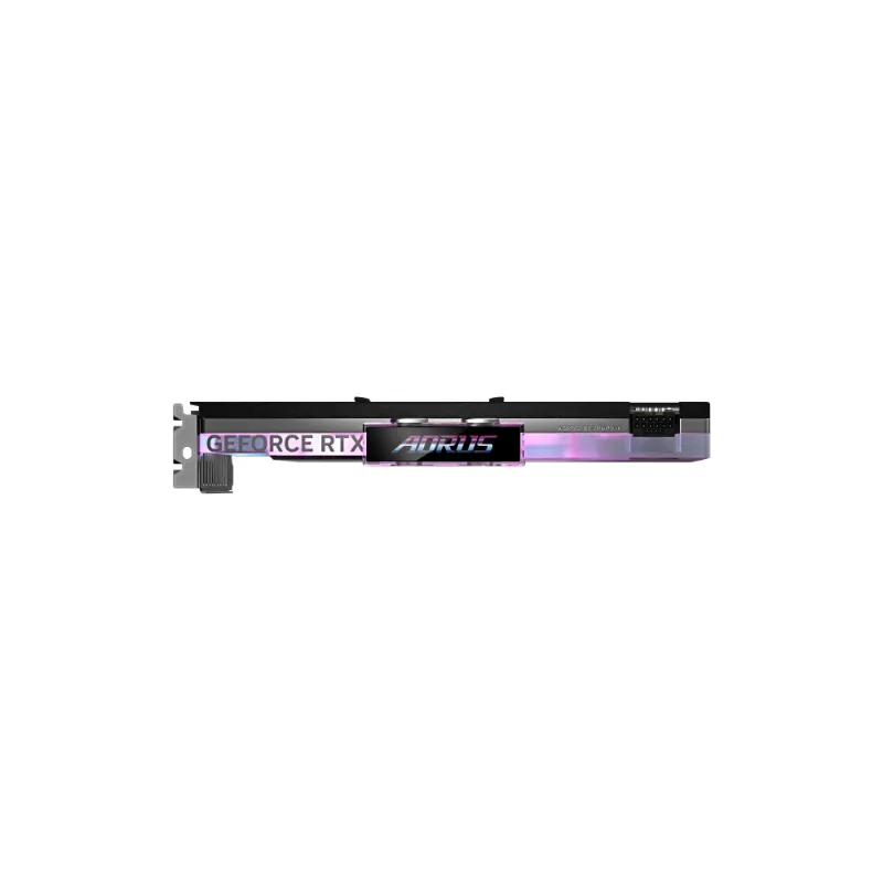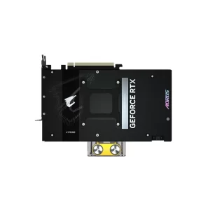 Water block được làm từ đồng hoặc hợp kim chất lượng cao, có lớp mạ chống ăn mòn. Mặt trên được trang trí bằng hệ thống LED RGB Fusion và logo AORUS tạo hiệu ứng ánh sáng bên trong hệ thống tản nhiệt nước. Card chiếm khoảng 2 slot, giúp tiết kiệm không gian trong case, dù tổng thể hệ thống tản nhiệt nước custom vẫn cần không gian rộng. Hai cổng kết nối G1/4 tiêu chuẩn được bố trí thuận tiện cho việc lắp đặt ống.