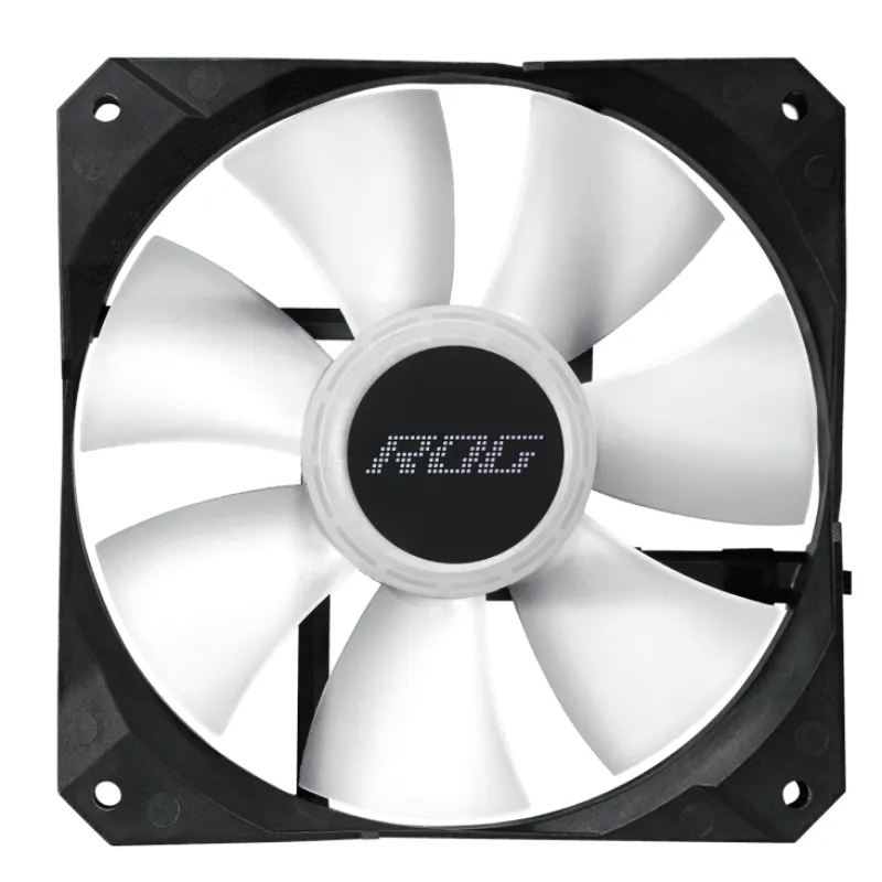 - Quạt ROG ARGB Tối ưu: Các quạt ROG được thiết kế đặc biệt để tạo ra luồng gió mạnh và áp suất tĩnh cao, lý tưởng cho việc làm mát radiator. Quạt được kiểm soát bằng PWM để cân bằng hiệu suất làm mát và độ ồn.